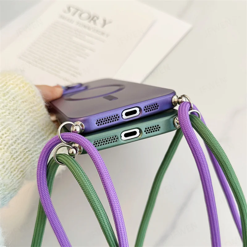 MagSafe Magnetic Silicone Case with Strap and Lens Cover for All iPhone