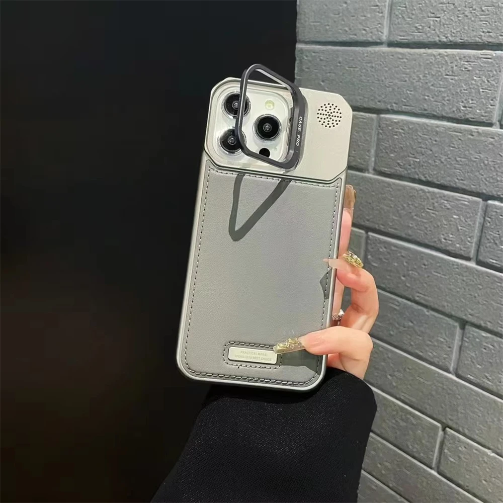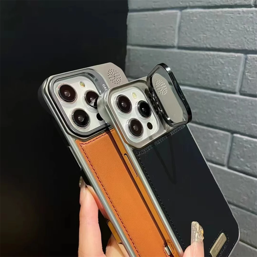 Ultra Slim Magnetic Leather Case for Lens Holder Alloy for All iPhone with MagSafe Wireless Charging Cover